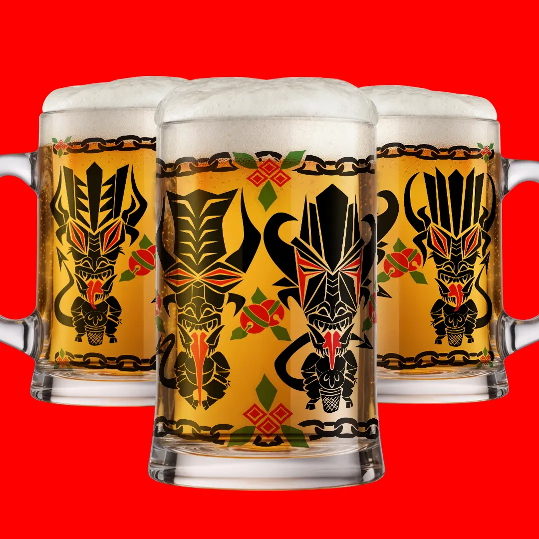 The Merry Krampsmus Beer Stein is here to bring deep holiday cheer and mild seasonal chaos. Featuring a delightfully goofy Krampus who definitely forgot what he was supposed to be doing (punishing children? delivering gifts? starting a polka band??), this stein captures the true meaning of the season: vibes over accuracy.