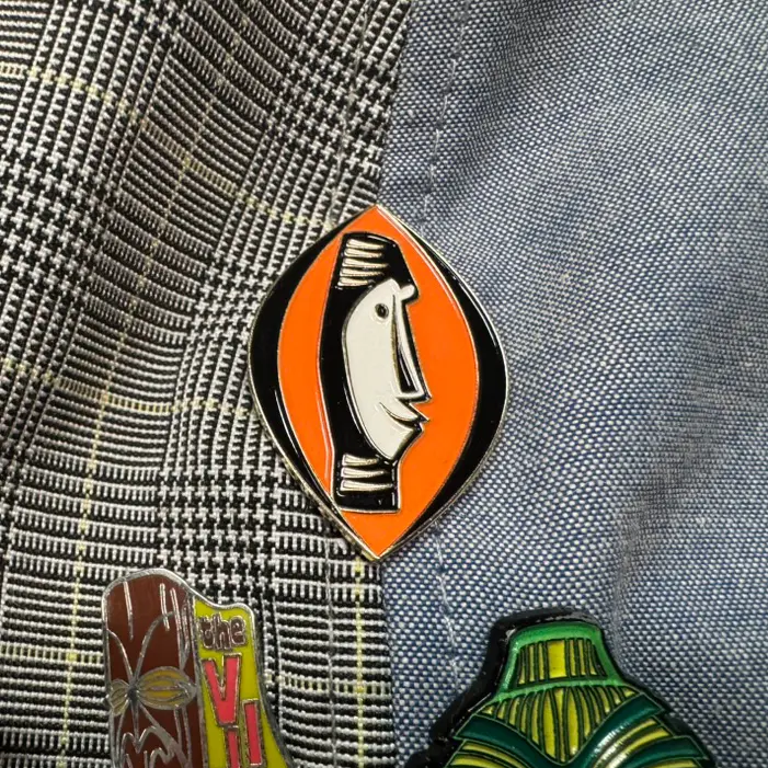 Unlock the hidden gaze of the tiki underworld with the Eye of Bob, an enamel pin drawn from the legendary Tiki Bob statue. More than a relic, this talisman watches over wanderers and revelers alike—an all-seeing guardian from the golden age of Polynesian Pop. Carry it as a charm of mystery, protection, and playful power.