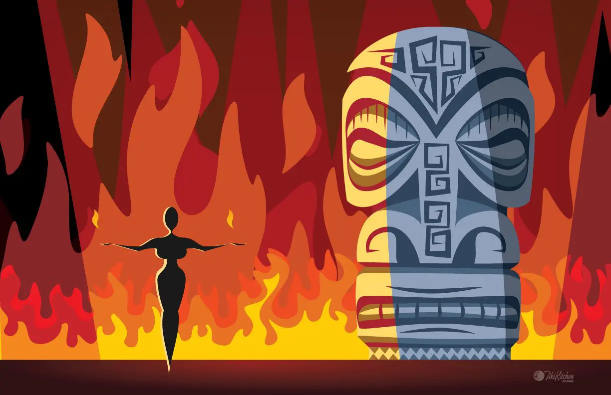 Rendered in vibrant volcanic hues and infused with the charm of vintage adventure serials, this artwork feels like a lost frame from a long-buried reel: exotic, mystical, and just a little bit dangerous. Hang it in your home tiki bar, lounge, lair, or secret hideout and prepare to be transported to an island where legends dance, embers sparkle, and danger always lurks just off-screen.